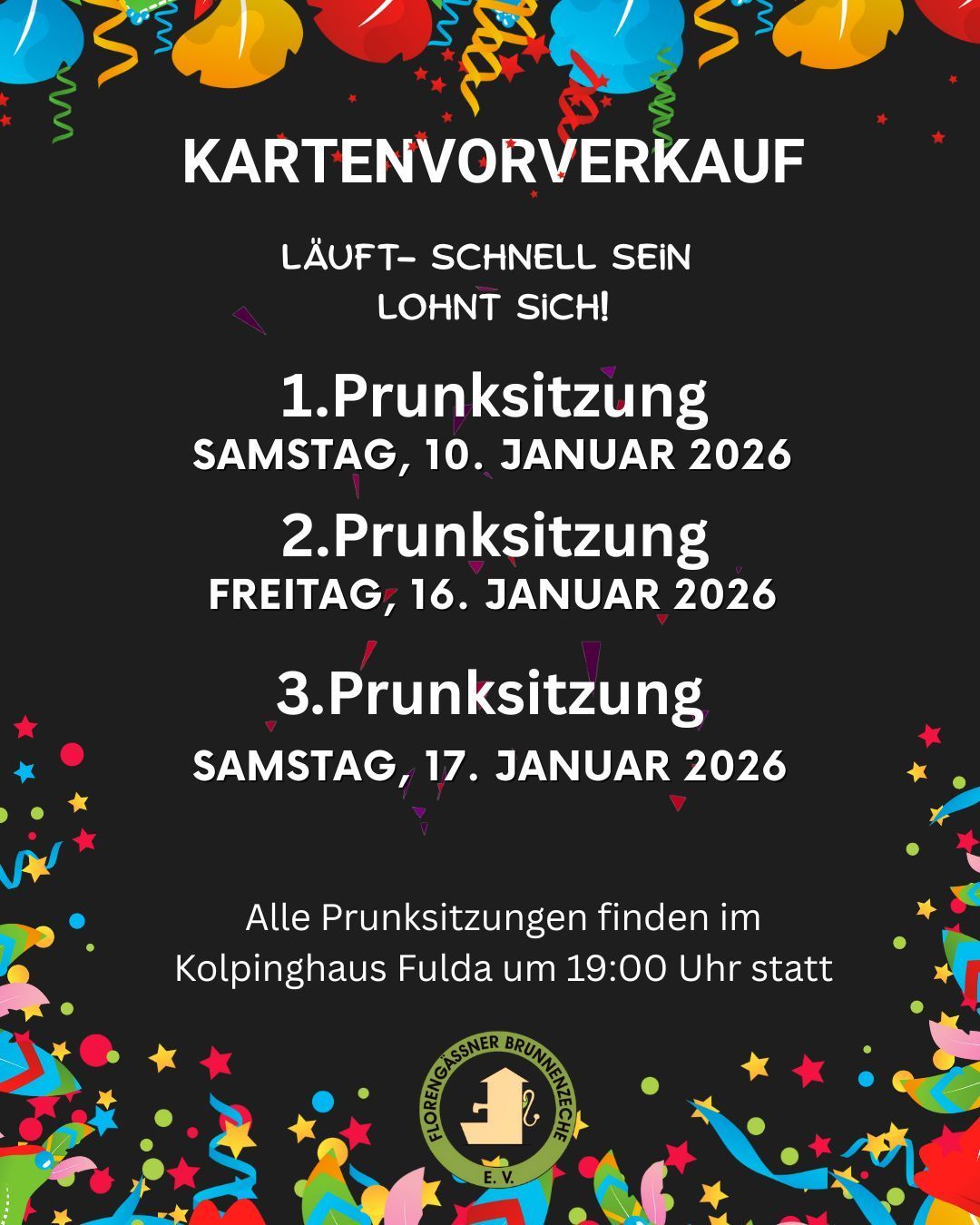 Mit drei großen Prunksitzungen, Kinderfastnacht und einem Ball - seit 2003 zusammen mit unseren Freunden von den Randstaaten der Fulder Foaset "Brääder nie" - sowie vielen kleinen vereinsinternen Veranstaltungen trägt die Florengäßner Brunnenzeche erheblich zum Erfolg des größten Heimatfestes der Stadt Fulda bei.